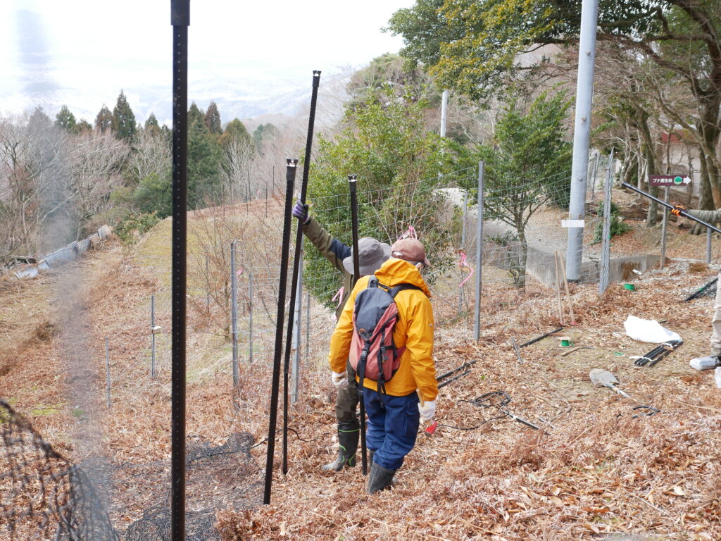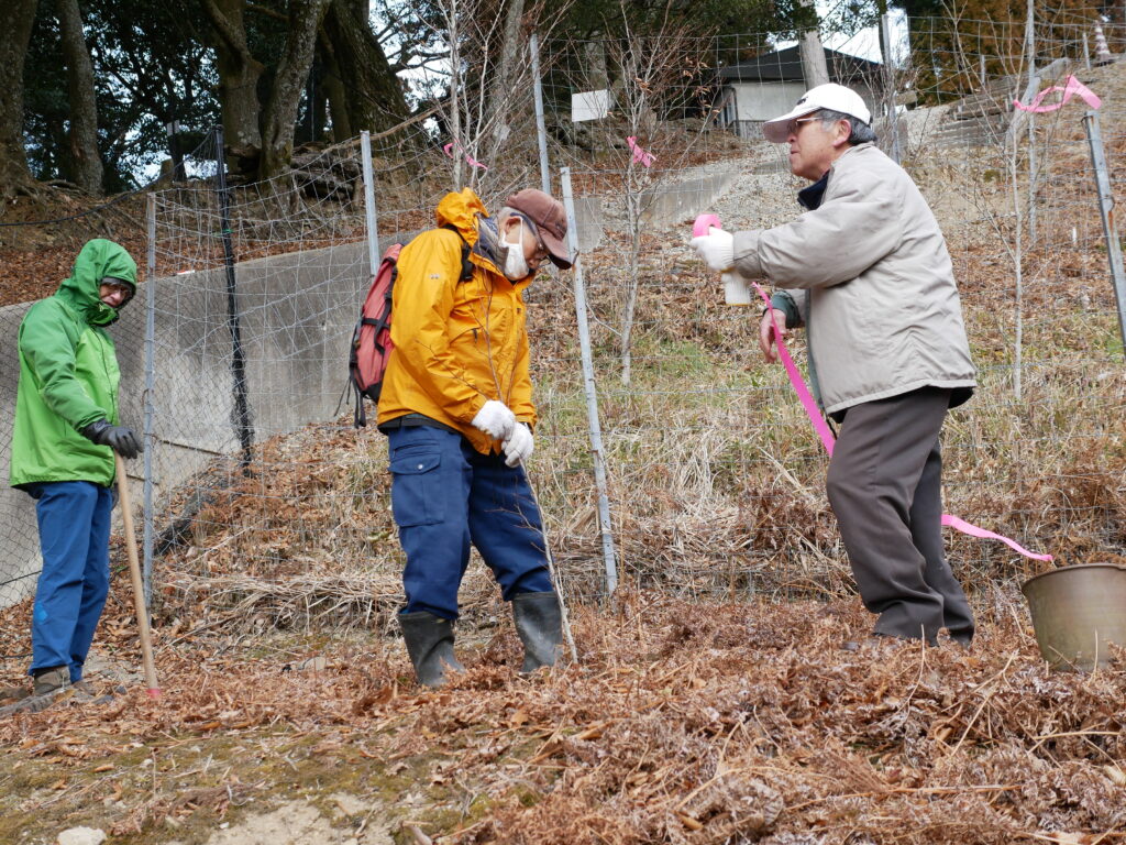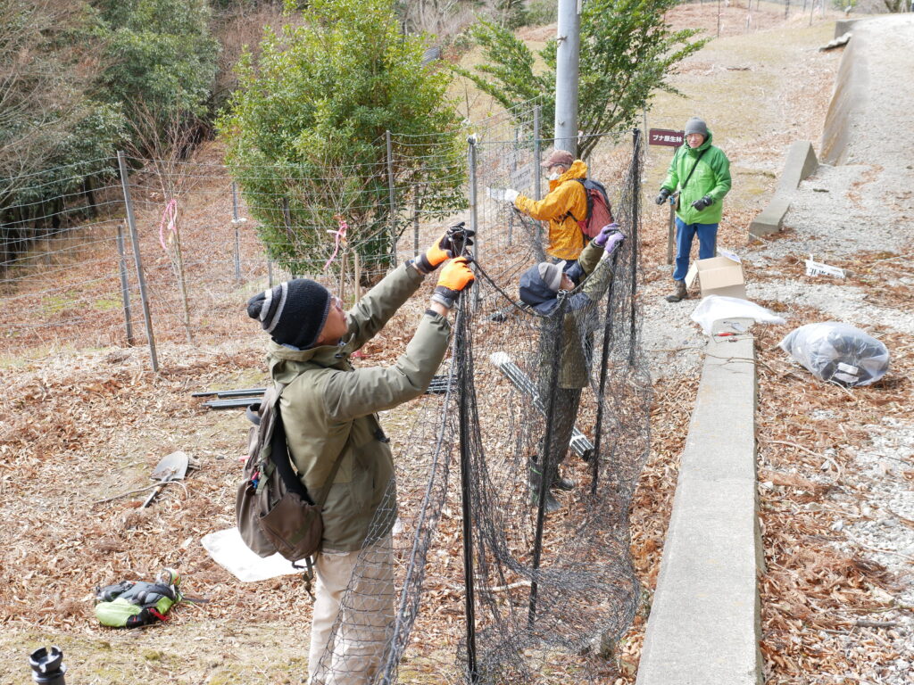 今年初めの保護活動は、12月に引き続き兵庫県川西市の天然記念物エリアに防鹿柵の追加と植樹を行いました。