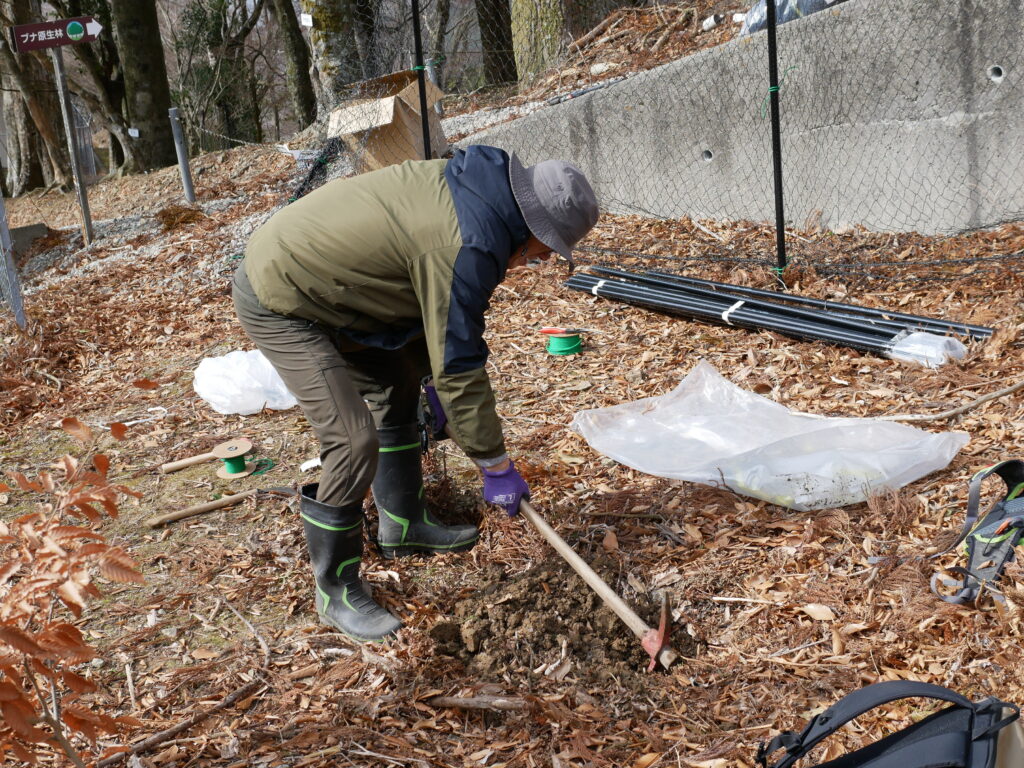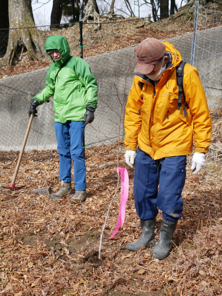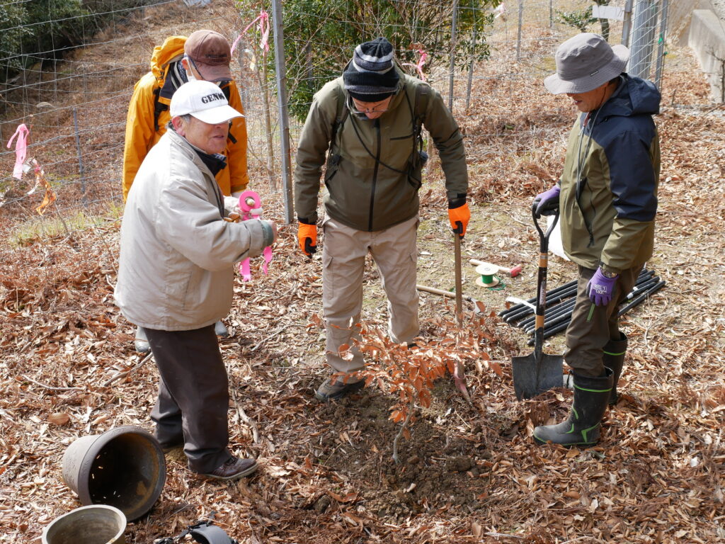 今回設置したエリアに2本のブナの植樹を行いまいした。